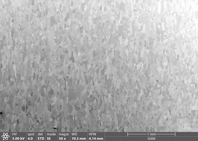- Process consistency – Electron Back-Scatter Diffraction (EBSD/OIM) analysis shows a high degree of uniformity in both grain size and orientation from plate to plate